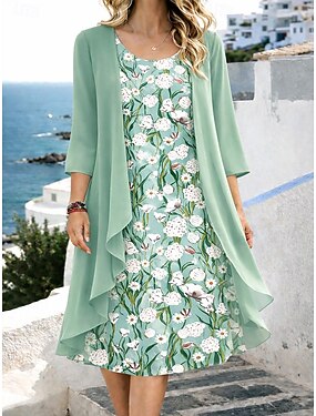 Set di abiti da donna a due pezzi abito midi con giacca abito elegante a linea maniche a ¾ casual semi formale stampa grafica floreale maniche corte scollo rotondo data blu cielo vestibilità regolare