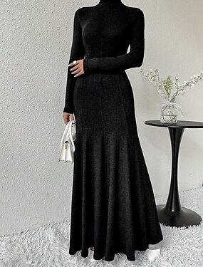Per donna Abito Midi Abito nero Vestito Casual Elegante Moda Moderno Quotidiano All'aperto Uscire Vestibilità regolare Semplice Manica Lunga Dolcevita Nero Primavera Inverno Autunno