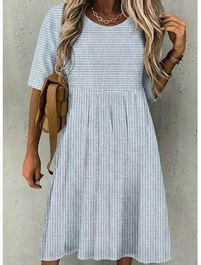 Per donna Abito Midi Vestito Casual Abito Estivo Moda Moderno Quotidiano Spiaggia Weekend Vestibilità regolare A righe Manica Corta Scollo a V Blu Estate Primavera Autunno