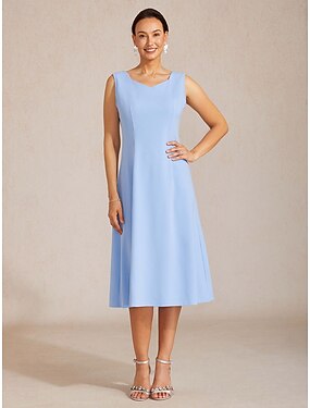 Per donna Abito Midi Tubino Elegante Quotidiano Ospite di nozze Data Tinta unica Senza Maniche Collo quadrato Azzurro cielo
