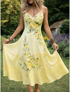 Per donna Abito lungo maxi Vestito Estivo Abito a trapezio Abito Sottoveste Vacanza Casual Spiaggia Vestibilità regolare Floreale Grafico Senza Maniche Scollo a V Blu Giallo Rosa Marrone chiaro