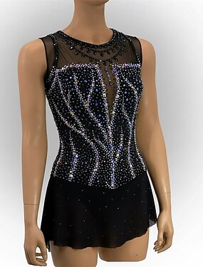Abito da pattinaggio artistico Per donna Pattinaggio sul ghiaccio Vestito Nero Patchwork Schiena aperta Elasticizzato Allenamento Competizione Vestiti da pattinaggio sul ghiaccio Classico Cristallo