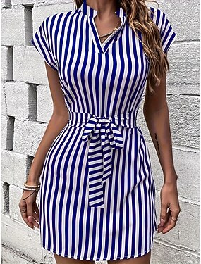 Abito Mini Donna Abito A Line Abito T Shirt Abito Tee Casual Vacanza Quotidiano Fit Regolare Grafica Stripes Manica Corta Collo Nato Nero Estate Primavera