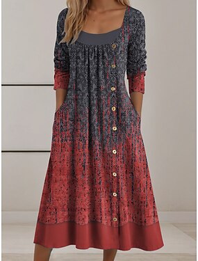 Per donna Abito Midi Abito a Tubino Casual Quotidiano Vestibilità regolare Grafico Geometrico Manica Lunga Collo quadrato Blu Rosso Viola Verde Autunno Inverno