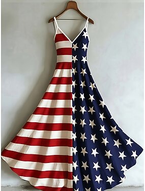Giorno dell'Indipendenza Abito Midi Patriottico da Donna Abito A tubino Festa Casual Boho Data Adattamento Regolare Stampa Grafica Bandiera Maniche Lunghe Collo a V Blu Estate Primavera Autunno