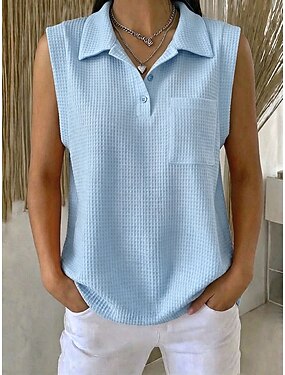 Per donna Canotta a nido d'ape Polo Maglietta Tasca Elegante Classico Senza Maniche Colletto a Camicia Top Regolari Casuale Spiaggia Weekend Blu Nero Rosa Rosso Arancione Estate Primavera