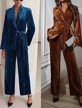 Per donna Giacca Abito da ufficio Set di Pantaloni Manica Lunga Colletto a Camicia Tinta unica Volant Vintage Essenziale Ufficio Abbigliamento da lavoro Blu Nero Bianco Autunno & Inverno Vestibilit