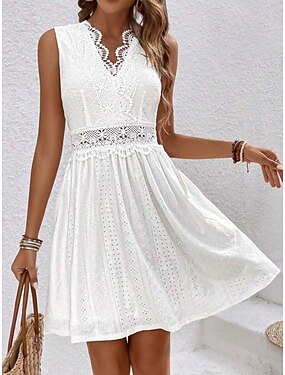 Per donna Mini abito Abito in Pizzo Abito Bianco Vestito Casual Abito Estivo Elegante Moda Spiaggia Vacanza Ferie Vestibilità regolare Semplice Senza Maniche Girocollo Bianco Estate Primavera