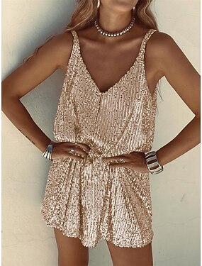 Per donna Mini Abito Abito con Paillettes Abito da Cocktail Abito Elegante Moda Festa serale Cocktail party Weekend Vestibilità regolare Semplice Senza Maniche Spalline Scollo a V Nero Bianco Rosso