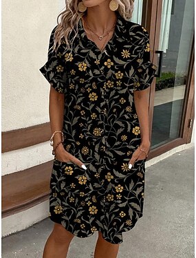 Per donna Mini Abito Abito Camicia Vestito Casual Abito Stampato Moda Moderno Quotidiano Spiaggia Weekend Vestibilità regolare Floreale Manica Corta Colletto a Camicia Nero Estate Primavera Autunno