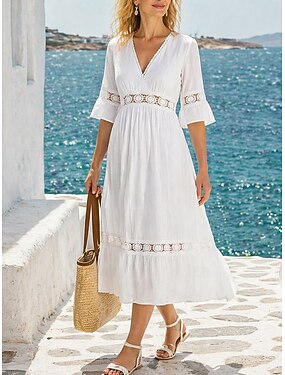 Per donna Abito Midi Abito in pizzo bianco Abito a trapezio Casual Quotidiano Vestibilità regolare Semplice Senza Maniche Scollo a V Bianco Estate