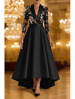 Per donna Da donna Abito da smoking Linea ad A Abito alto-basso Matrimonio Formale Ospite di nozze Strass Elegante Manica 3/4 Manica 3/4 plissettata Lunghezza al pavimento Collo a scialle Revers