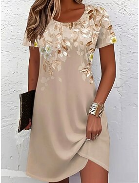 Per donna Abito Midi Abito a Tubino Vestito T-Shirt Casual Quotidiano Vestibilità regolare Floreale Grafico Manica Corta Girocollo Champagne Estate Primavera