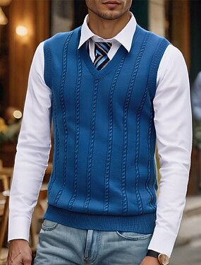 Per uomo Gilet Maglione elegante Maglione Maglione a maglia A Coste Maglia Top Regolari Lavorato a maglia Scollo a V Abbigliamento quotidiano Data Abbigliamento Autunno Inverno Blu Verde S M L