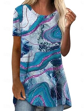 Per donna Maglietta Stampato Oceano Elegante Classico Casual Manica Corta Girocollo Top Regolari Quotidiano Blu Blu Reale Azzurro cielo Verde scuro Estate Primavera