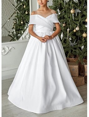 Linea ad A Lunghezza al pavimento Abito da damigella d'onore bambina Prima comunione Ragazze Abito da ballo carino Raso con Fiocco/Fiocchi Elegante Misura 3-16 anni