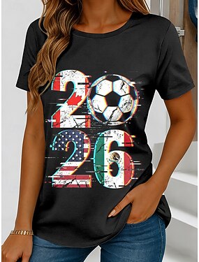 Maglietta da Donna World Soccer Match 2026 Stampa Grafica Elegante Classica Casual Maniche Corte Collo Tondo Regular Top Sportivi Giornalieri Nero Bianco Rosso Estate Primavera