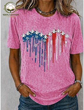 Giorno dell'Indipendenza Americana T-shirt da donna in 100% cotone stampa grafica bandiera astratta stilosa basic classica maniche corte colletto rotondo regolari top casual quotidiano blu rosa viola