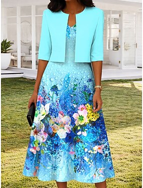 Per donna Insieme del vestito Abito Midi Abito a trapezio Elegante Casual Floreale Grafico Stampato Abito Midi Mezza Manica Scollo a V Quotidiano Blu Viola Verde Estate Primavera Vestibilità regolare
