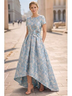 Linea ad A Asimmetrico Lunghezza alla caviglia Abiti da Cocktail Elegante Vintage Floreale Manica Corta Girocollo Festa in giardino Matrimonio Tasca Jacquard con Fiocco/Fiocchi Tasca