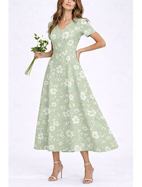 Per donna Abito Midi Vestito Casual Vestito in Chiffon Abito Floreale Abito Estivo Moda All'aperto Feste Ferie Vestibilità regolare A Pois Manica Corta Scollo a V Bianco Giallo Rosso Verde Estate
