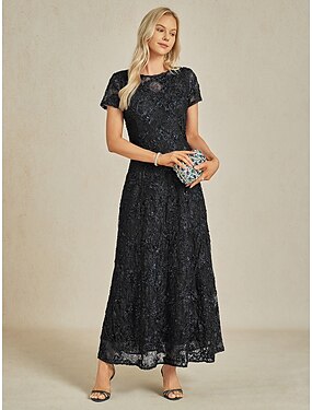 Per donna Abito maxi Tubino Elegante Festa cocktail Vestibilità regolare Tinta unica Manica Corta Girocollo Nero