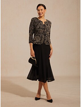 abito giacca da donna, twinset, glitterato, paisley, elegante, manica a 3/4, girocollo, top normali, abbigliamento da lavoro, da invitata a un matrimonio, nero, estate, primavera, autunno