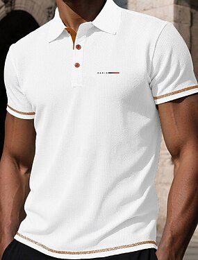 Per uomo Testurizzato Maglia da golf Affari Attivo Classico Manica Corta Moda Moderno Tinta unica Bottoni Estate Primavera Vestibilità regolare Nero Bianco Blu reale Beige Grigio Testurizzato
