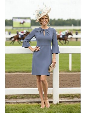 Guaina / Colonna Sera Corto Mini Abito Derby Abiti da Cocktail Elegante Vintage Manica 3/4 Girocollo Formale Derby del Kentucky Tessuto Elasticizzato con Arricciato Tinta unita