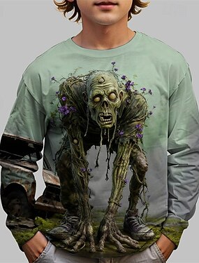 Halloween Ragazzi 3D Grafico Maglietta Manica Lunga Primavera Autunno Moda Essenziale Bambini 4-12 Anni Girocollo All'aperto Casuale Quotidiano Vestibilità regolare