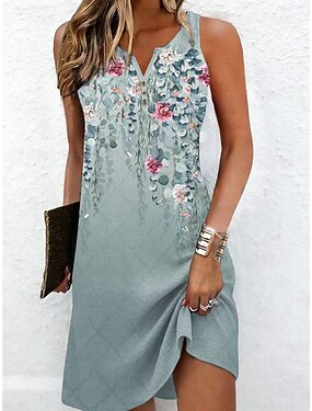 Per donna Abito al ginocchio Vestito Casual Abito Floreale Elegante Moda Moderno All'aperto Vacanza Uscire Vestibilità regolare Floreale Senza Maniche Girocollo Blu blu acqua Verde chiaro Rosso