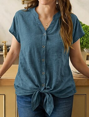 Per donna Camicia Camicia Estiva Camicia con Bottoni Top in chiffon Arricciato Nodo frontale Tinta unica Semplice Elegante Vacanza Moda Manica Corta Scollo a V Top Regolari Quotidiano Abbigliamento