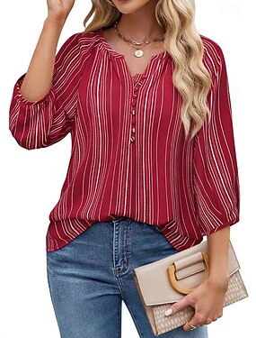 Per donna Top in pizzo Elegante Manica Lunga Scollo a V Top Regolari Matrimonio in Spiaggia Quotidiano Weekend Nero Rosso Albicocca Estate Primavera