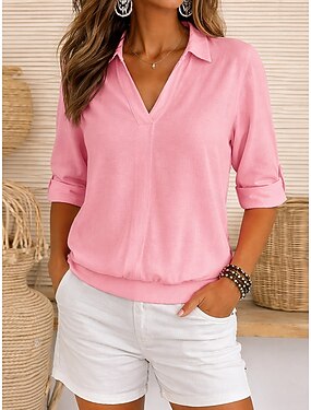 Per donna Misto cotone Top estivi Bolero Tinta unica Quotidiano Casual Manica 3/4 Scollo a V Top Regolari Nero Bianco Rosa Marrone Albicocca Estate Primavera Autunno