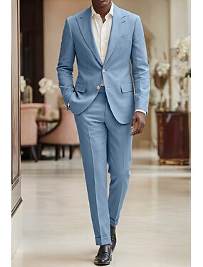 Uomo Completi in Lino Abiti da lavoro Casuale Matrimonio Bianco Rosa Primavera & Estate Tuta Bavero classico Moda Quotidiano Tinta unita Vestibilità su misura 2 pezzi Monopetto Due Bottoni