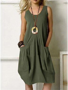 Per donna Abito Midi 100% cotone Abito a Tubino Vestito Estivo Vestito Casual Essenziale Classico Casual Quotidiano All'aperto Vestibilità regolare Colore Puro Senza Maniche Collo a U Verde militare