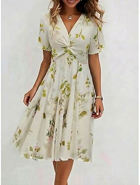 Per donna Abito al ginocchio Vestito Casual Abito da invitata a nozze Vestito in Chiffon Abito Floreale Elegante Moda Classico All'aperto Vacanza Uscire Vestibilità regolare Floreale Manica Corta