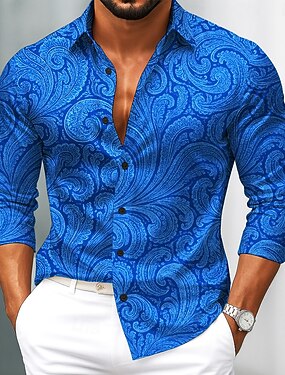 Per uomo Paisley Stampa Floreale Colore sfumato Camicia Camicia in raso Camicia elegante Manica Lunga Vintage Retrò Vacanza Abbigliamento Quotidiano Estate Primavera Autunno Collo ripiegato Stampa 3D