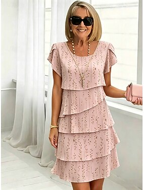 Linea ad A Lunghezza al ginocchio Abito da Ballo Abito da invitata a nozze Abiti per invitati a matrimoni Elegante Quotidiano Manica Lunga Girocollo Balli di fine anno Festa in giardino con Volant