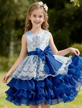 Abito da damigella d'onore bambina Ragazze Abito formale Abiti da sposa Feste Matrimonio Formale Moda Bello Dolce Pizzo Rete Senza Maniche Girocollo Blu Rosso 4-13 Anni
