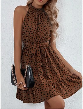 Per donna Mini Abito Abito a trapezio Abito Sottoveste Abito a spalle scoperte Vacanza Casual All'aperto Uscire Vestibilità standard Leopardo A Pois Senza Maniche All'americana Nero Marrone Verde