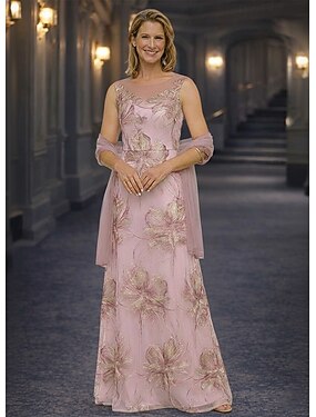Linea ad A Lunghezza al pavimento Abito da invitata a nozze Abito da cerimonia per signora Mezza Manica Scollo Tondo Elegante Semplice Casual Formale Chiffon Pizzo Scialli con Arricciato Ricamo
