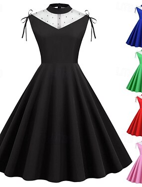 Linea ad A Lunghezza Tè Abito in Raso Vestito da Festa Abito da Cocktail Abito da cerimonia per signora Senza Maniche Scollo a V Elegante Formale Cocktail party Semi-Formale Raso con Fiore Tinta unita