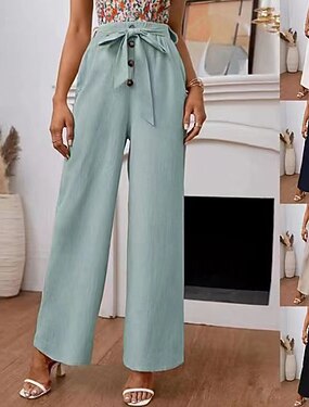 Per donna Finto cotone e lino Gamba larga Chinos Pantaloni Estivi Vacanza Essenziale Casual Lunghezza intera Vita Alta Semplice Fascia Elastica Comodo Comodità Morbido Micro-elastico All'aperto