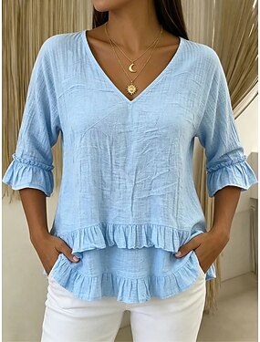 Per donna Maglietta Volant Grafico Semplice Elegante Manica Corta Manica 3/4 Scollo a V Top Regolari Casuale rosso violaceo Bianco Azzurro cielo Verde Kaki Estate Primavera