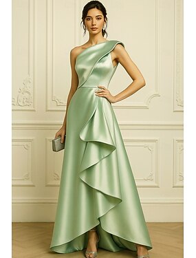 Linea ad A Lunghezza al pavimento Abito da Sera Da principessa Abito formale Elegante Senza Maniche Monospalla Matrimonio Formale Tasca Raso con Arricciato Volant