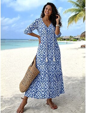 Per donna Abito maxi Vestito Casual Abito Stampato Elegante Moda Moderno All'aperto Spiaggia Vacanza Vestibilità comoda Grafico Manica Corta Scollo a V Blu Estate Primavera