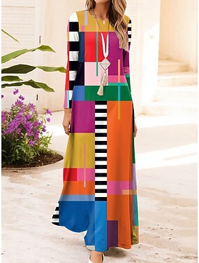 Per donna Abito maxi Vestito T-Shirt Casual Quotidiano Uscire Vestibilità regolare Grafico Geometrico Manica Lunga Girocollo Rosso Marrone chiaro Arancione Marrone Estate Primavera Autunno