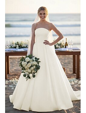 Abiti da sposa Linea ad A Scollo a Cuore Canottiera Senza Maniche Strascico da Cappella Raso Abiti da sposa Con Tinta unita