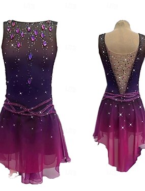 Abito da pattinaggio artistico Per donna Ragazze Pattinaggio sul ghiaccio Vestito Viola Patchwork Orlo asimmetrico Rete Spandex Alta elasticità Allenamento Competizione Vestiti da pattinaggio sul